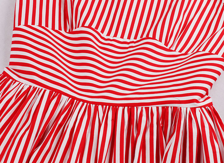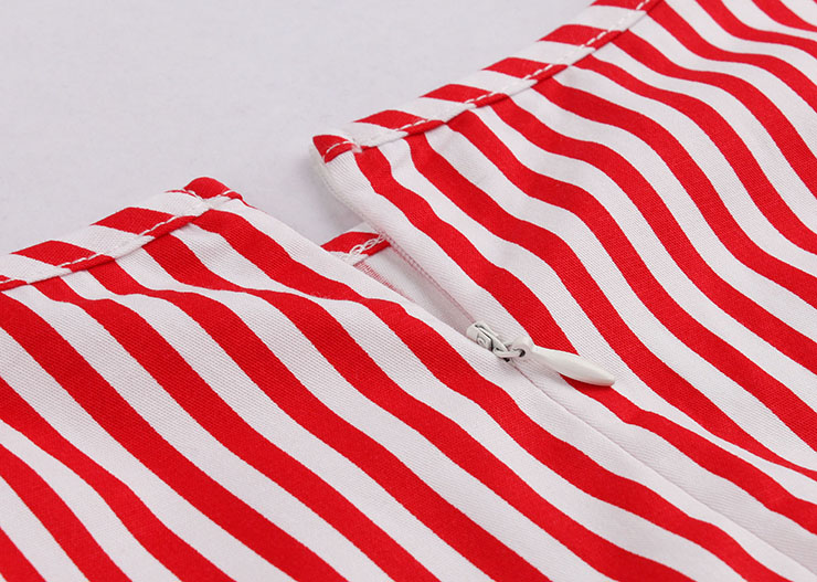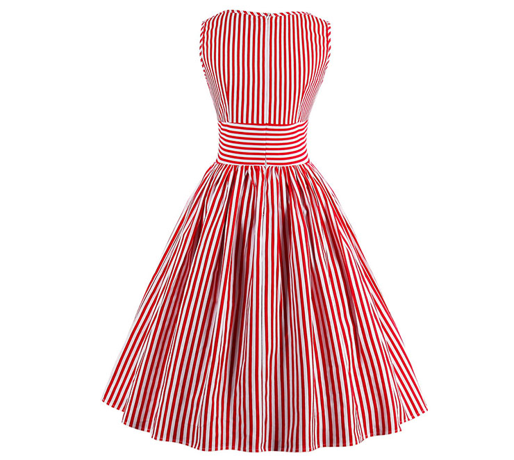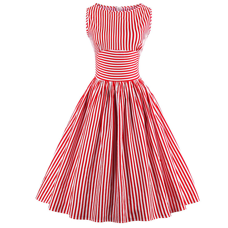 Women's O-neck sleeveless striped dress features , O-shaped neckline, A-line flared skirt, concealed zipper closure at back, cross stripe high waist design shows off your slim figure perfectly, great choice for daily casual,ball, party, banquet and other special occasion.