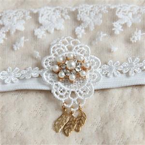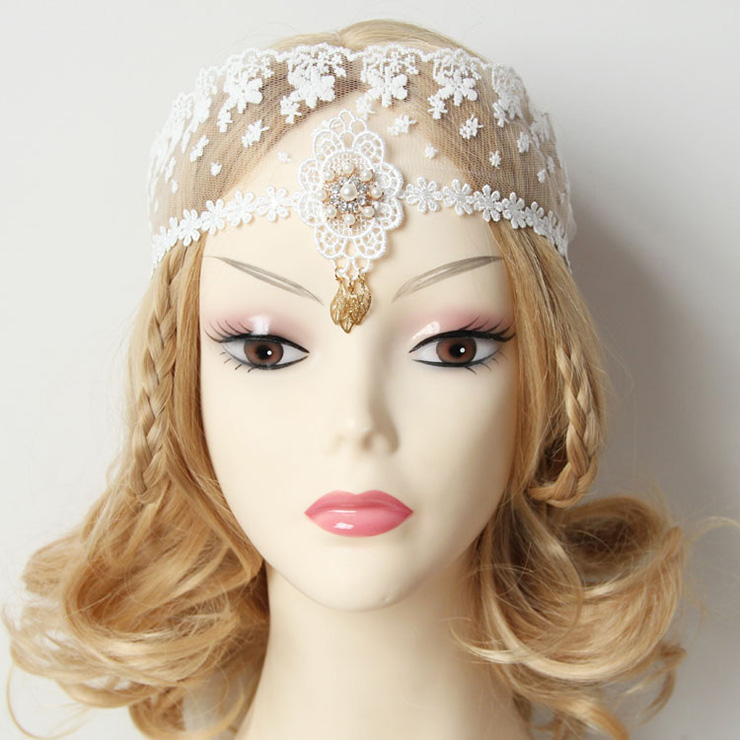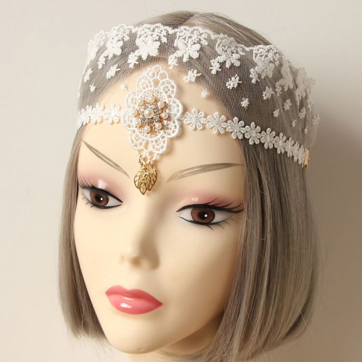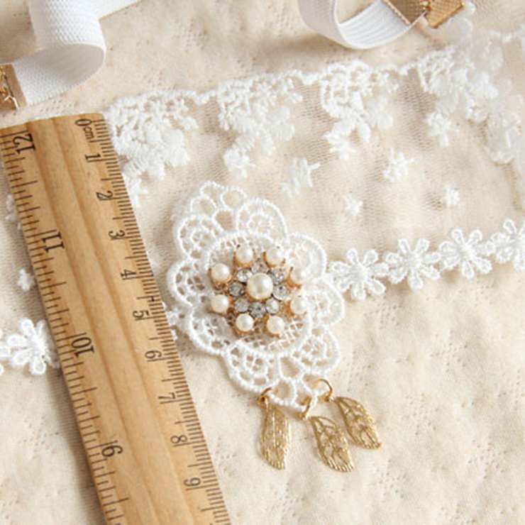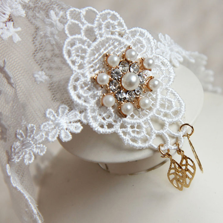 Attractive white lace mask catch your eyes with its noble lace design with gems accents on top and hanging tiny golden leaves, comes with elastic strap to keep the mask in position, perfect for wedding party, events, or just for collections.