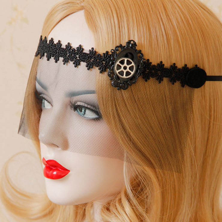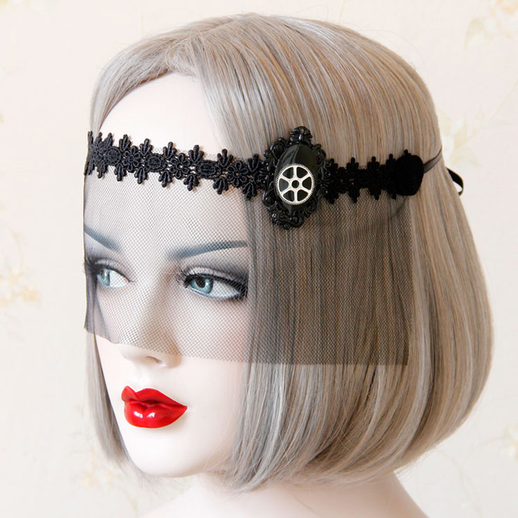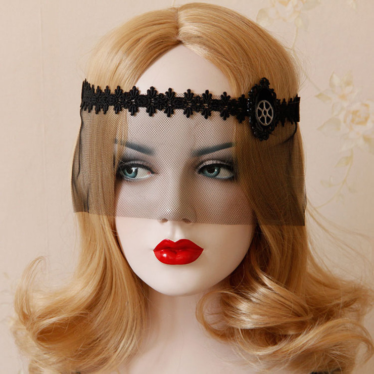 Women's sexy face mask featuring with mesh face veil and amazing lace accents and steampunk style decors. So mysterious and elegant for women, one size fits most, comes with a satin tie back closure to keep the mask in position, perfect for halloween party, events, or just for collectionsg