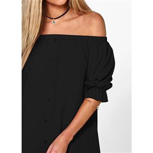 This sexy loose chiffon mini dress : strapless off shoulder design with elastic slash neck, elastic sleeve, is made of layered sheer chiffon, decorative with irreplaceable button, comfortable and breathable to wear. Suitable for party, cocktail, vacation, casual in the street or beach. Good choice in spring, summer and autumn seasons.