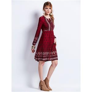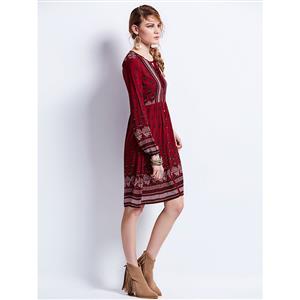 The women's casual dress features: simple v neck and long sleeve design, front lace up detail, high waist knee-length, with a line of button at the front and tribe style floral print. Perfect for daily casual, outdoor, wear-to-work and others occasion. (Only the dress.)
