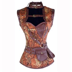 The steampunk corsets features: they are divided into jacket and skirt, the jacket attached spiral steel, detachable high-neck shrug and belt with the snap up pouch, zipper-up closure at side, a lace-up panel at the back, matching with vintage skirt, the high-low skirt with four ruffles. Siuts for Halloween costumes, perfect to club, party and others occasion. They aren't only sale together but also separately, you can find them on the right.