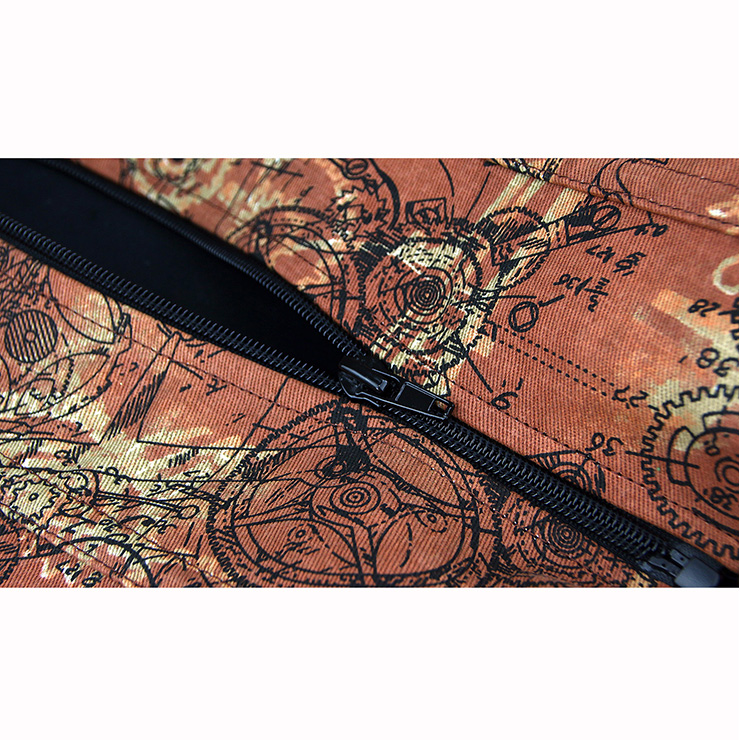 This Brocade Corset features faux leather accents and a removable high neck shrug, large snap up pocket attached, zipper on the side and a lace-up panel at the back.
