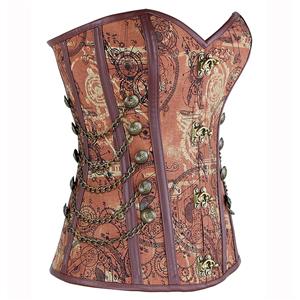The steampunk style corset features: adjustable halter with button closure, both side with bronze metal chain details, clasp fasten in the front and lace up at the back, attached ten flexible spiral steel bones.Perfect matches with punk shrug, gothic skirt or sexy G-string, suits for punk theme party, costume party.