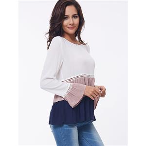 The women's casual top features: the top with flared long sleeves, round neck, hollow out at the waist, and three levels loose ruffle hem design. The top could match with any style of the bottom: jeans, leggings, shorts. Pefect for daily casual, outdoor, office and dating. (Only the top.)