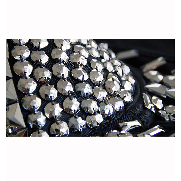 The women's fashion sexy bustier features: with spaghetti straps, sliver rivets trimming cover in the front, inside with padded cups, five lines hook and eye closure at the back. It has five size, suit for clubwear top, sexy corset, plus size top, and perfect to club, party.