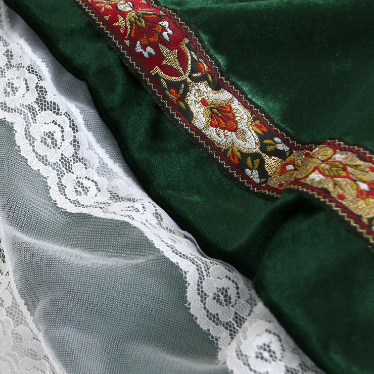 Women's German Beer Girl Oktoberfest Adult Costume featuring a cute dress with black underbust corset look bodice with elastic ruffled neckline and short puff sleeve, shoulder straps, a black lace-up detailing at front and attached white apron with lace hemline, distinctive national and folk stripes decorated on the dress, built in with a white lace layer, concealed zipper at back, matching black choker(The petticoat not include).