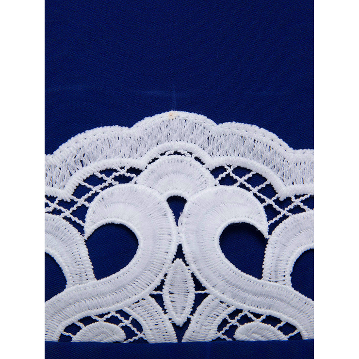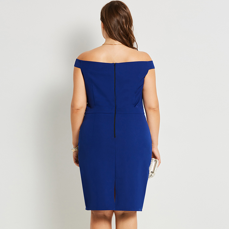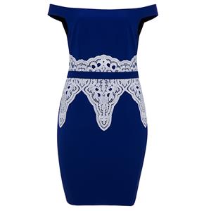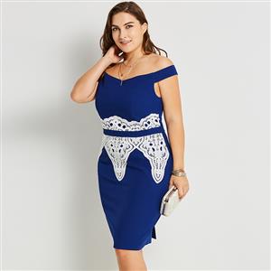 The plus size blue bodycon dress featuring off shoulder and slash neckline, with white lace appliques decorates the front waist, long zipper closure at back, slim fitted and bodycon design make you look sexy and beautiful. Occasions: suitable for party, bar, night out, club, prom and more.(Only the dress)