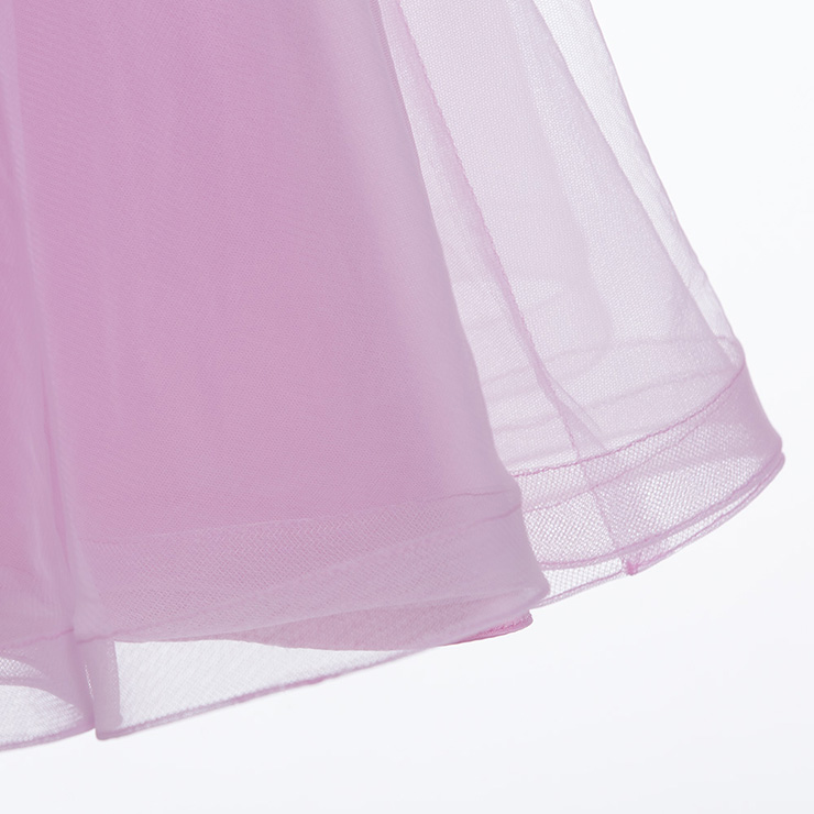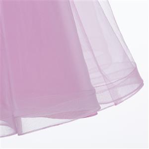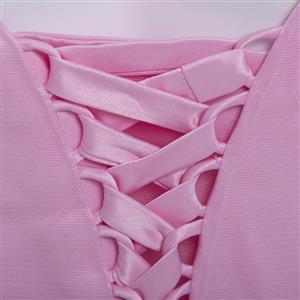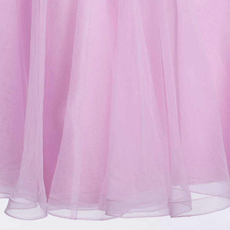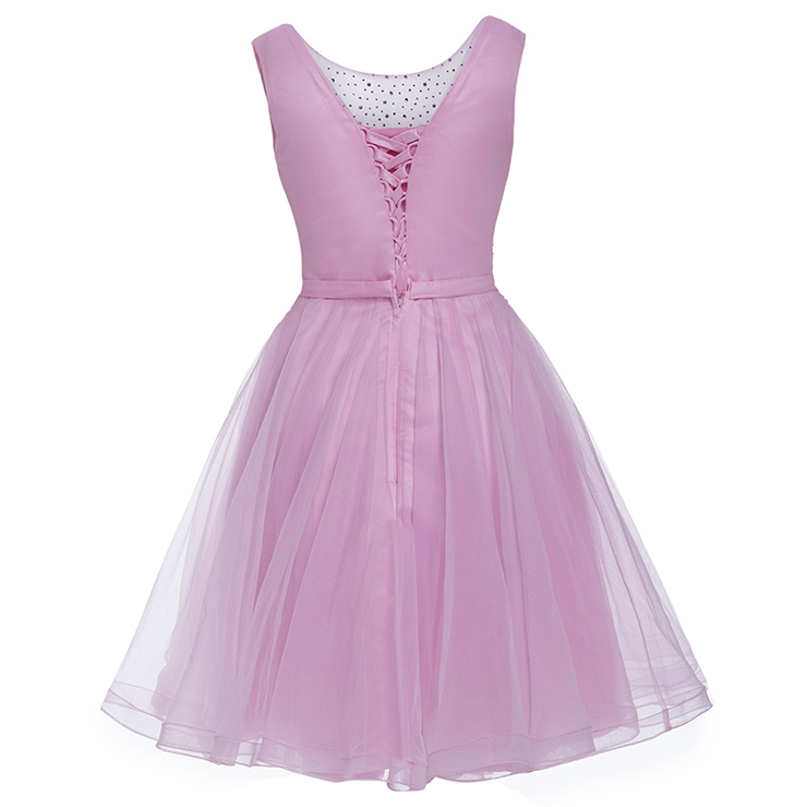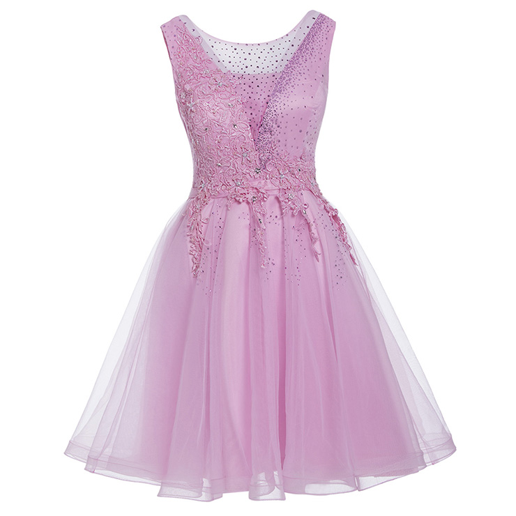 Women's fashion and elegant pink homecoming dress featuring simple round neck and sleeveless design, alluring sheer-illusion mesh on the sleeveless bodice make a deep plunging neckline look, delicate beaded applique spread from shoulder to waist and decorated with countless tiny beads. a small waist belt make a high waist look, lace-up detailing at back, sheer tulle layer at the bottom. Suit for Prom party, Evening, Wedding, Homecoming, School Party, Special Occasion, etc(Only the dress).