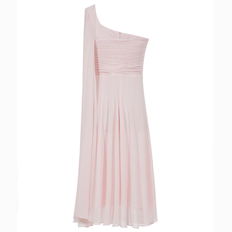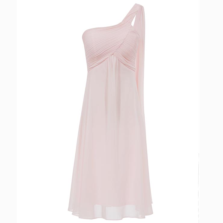 This prom party dress featuring comfortable fabrics, sleeveless, one shoulder, backless, solid color and pleated design, hidden zipper on the side, knee length and a-line design make you look lovely and charming. Occasions: suitable for evening, prom, party, wedding, cocktail and more.(Only the dress)