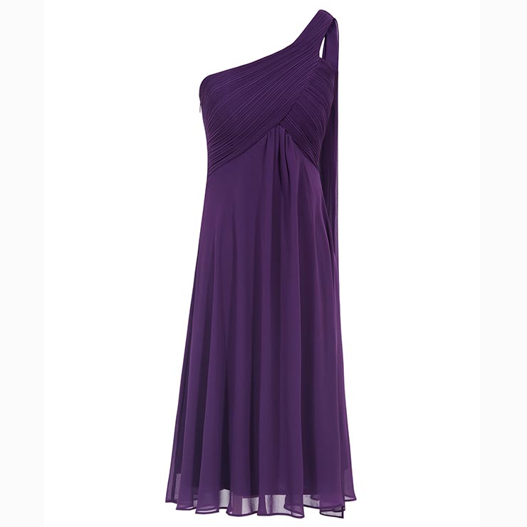 This prom party dress featuring comfortable fabrics, sleeveless, one shoulder, backless, solid color and pleated design, hidden zipper on the side, knee length and a-line design make you look lovely and charming. Occasions: suitable for evening, prom, party, wedding, cocktail and more.(Only the dress)