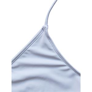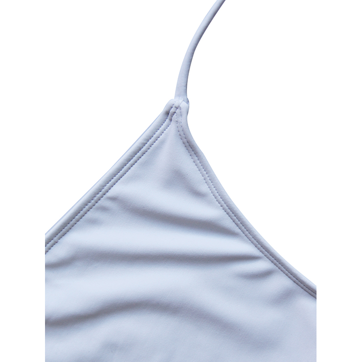 Women's sexy white bikini set featuring super hot one piece look, high waist design, cross straps at back, straps tie at each side. Perfect for Tropical Vacations, Summer, Beach & Pool.