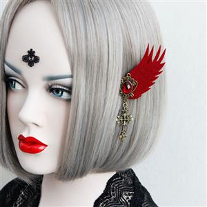 This gothic style earrings featuring exquisite bronze metal with ruby embellishment, red wings and bronze metal cross decoration, high quality alloy clip fix in your ears. Suitable for Halloween, cosplay, daily casual, party, fashion show and more (Only the earrings).