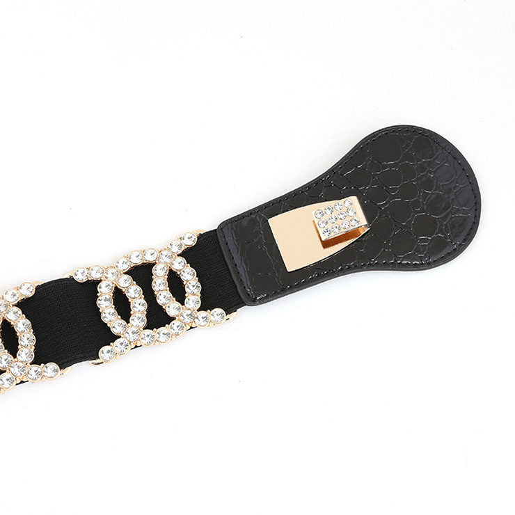 This Fashion Waist Belt features: high quality black elastic waistband with deluxe rhinestones embed, golden alloy buckle easy to wear. Perfect match with tunics, long chiffon blouses or dress, highlight your slim waist in a very attractive way.