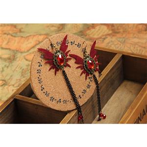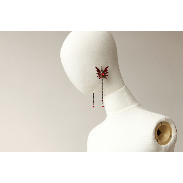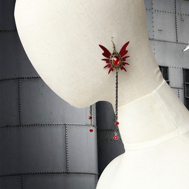 This Gothic Style Earrings features: delicate red butterfly embellished with exquisite bronze decoration and red gem, connected with black chains and red beads, high quality bronze alloy fix with your ears. Suitable for Halloween, cosplay, daily casual, party, fashion show and more (Only the earrings).