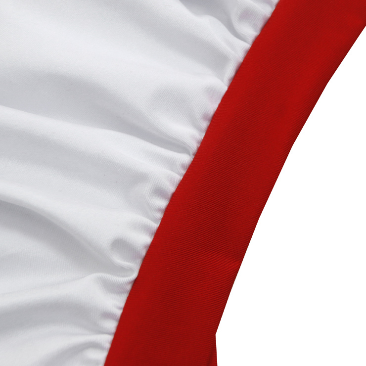 4pcs. This women's sexy nurse cosplay costume featuring include: halter neck crop top with ruffled and lacing up design, mini skirt with Red Cross and ruffle trim, matching nurse headpiece and cuff. Perfect for party, nightclub role play entertainment, halloween, theater role play, sexual flirting etc (Stethoscope and garter, stockings are not included).