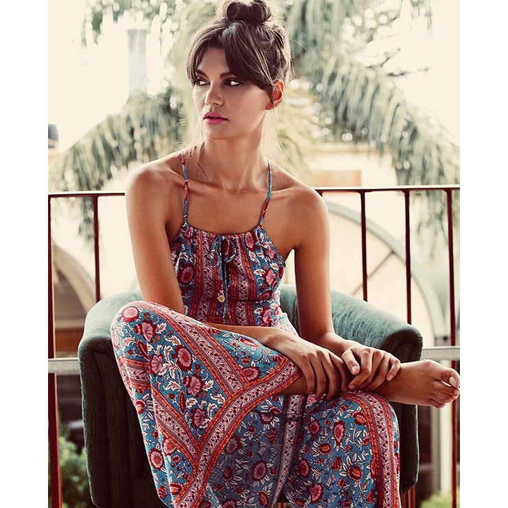 This gorgeous wide leg jumpsuit is so fashion and fascinating, sleeveless and backless are the highlight of this jumpsuit, x-strap design at back, high-waisted silhouette, flaunts wide-leg design, pink stipe and fashion bohemia style floral print. Great for casual, fashion show, dating, office, beach, classmate reunion or other occasions(Only the jumpsuit).