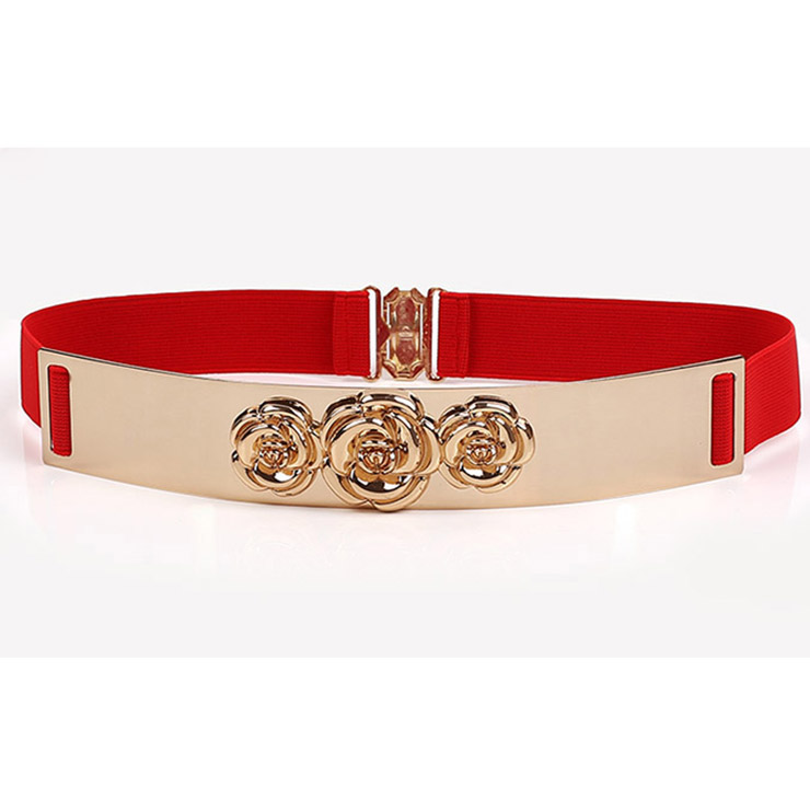 The vintage waist belt featuring high quality, fadeless alloy, stretchable belt for one size fit most style, front with gold decorative rose alloy, back with hook buckle fastening, high elastic band at back. Nice to pair with Dress, Jumpsuit, Cardigen, skirts and pants, a fashion accessory for daily or special occasion!