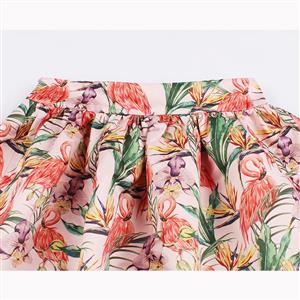 This vintage skirt features high waist, ruffled, midi length and A-line design, with pocket on both side, elegant red-crowned crane and floral print pattern cover the whole skirt, hidden zipper on the side. Suitable for daily casual, office, go out, school, party and other occasion.(Only the skirt)