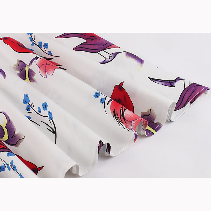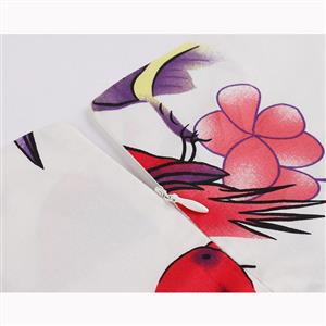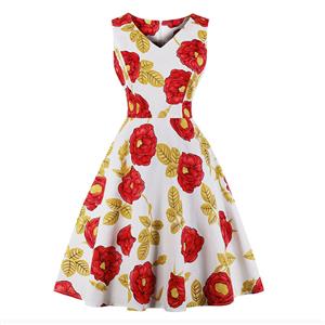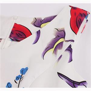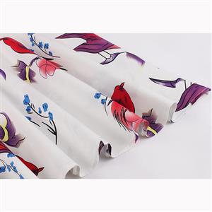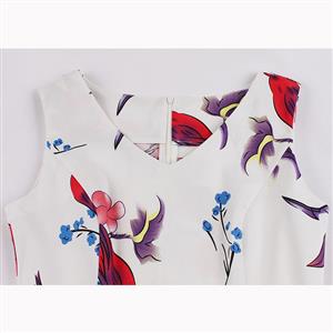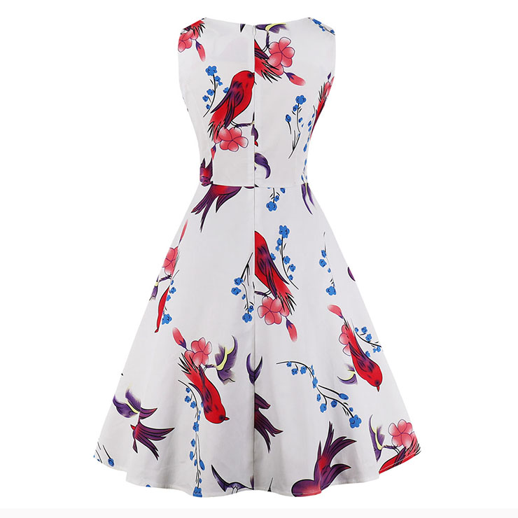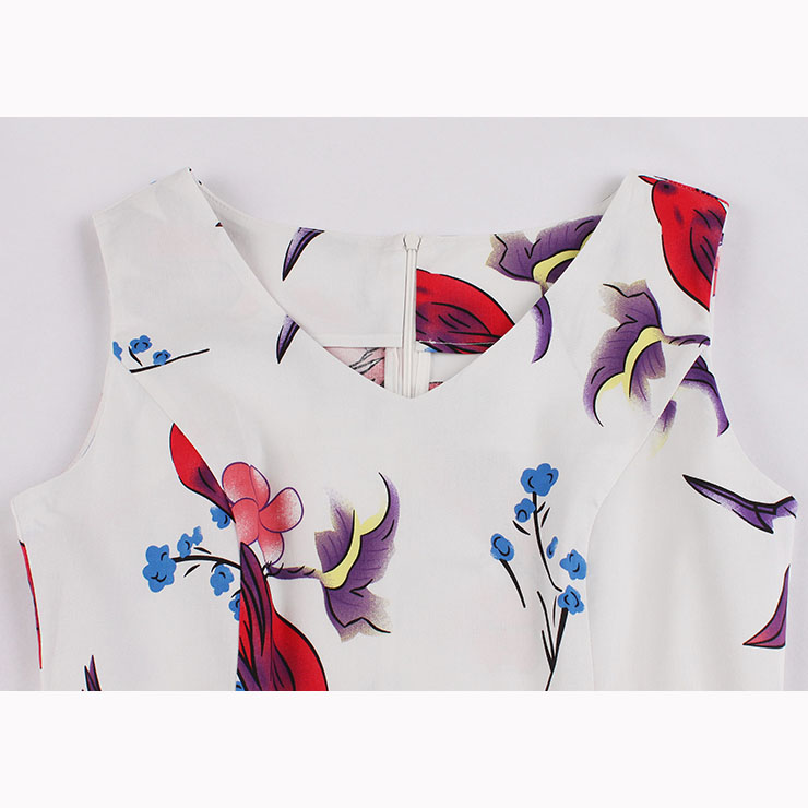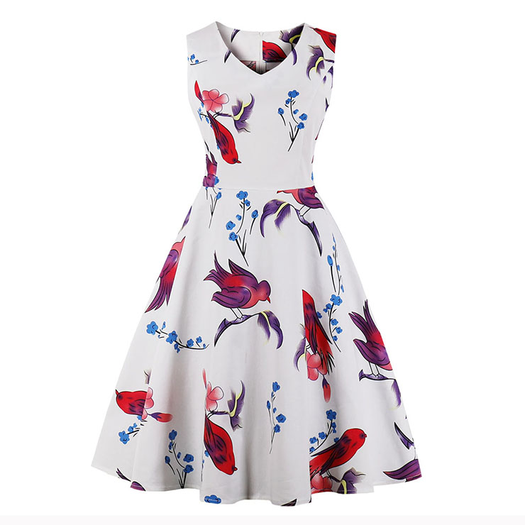 This vintage swing dress featuring sleeveless, v neck and high waist design, lovely floral and bird printing pattern cover the whole dress, hidden zipper at back, slim fit and midi length design make you look elegant and beautiful. Suitable for party, date, holiday, go out, daily casual and more.
