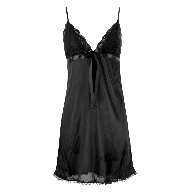 This charming babydoll lingerie features: made of soft, comfortable and skin-friendly satin fabric, deep v neckline, adjustable spaghetti straps, open back design, floral lace bra top, lace trim hemline, matching g-string.
