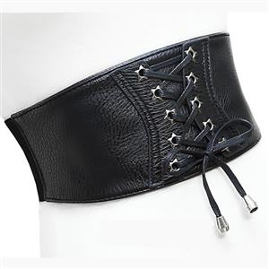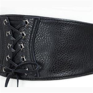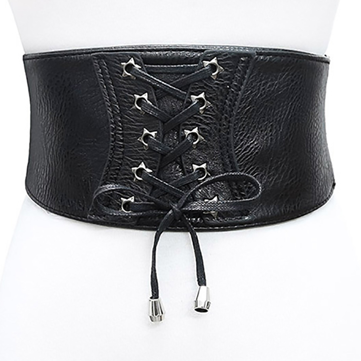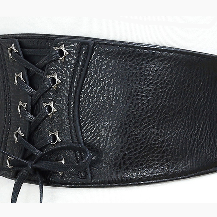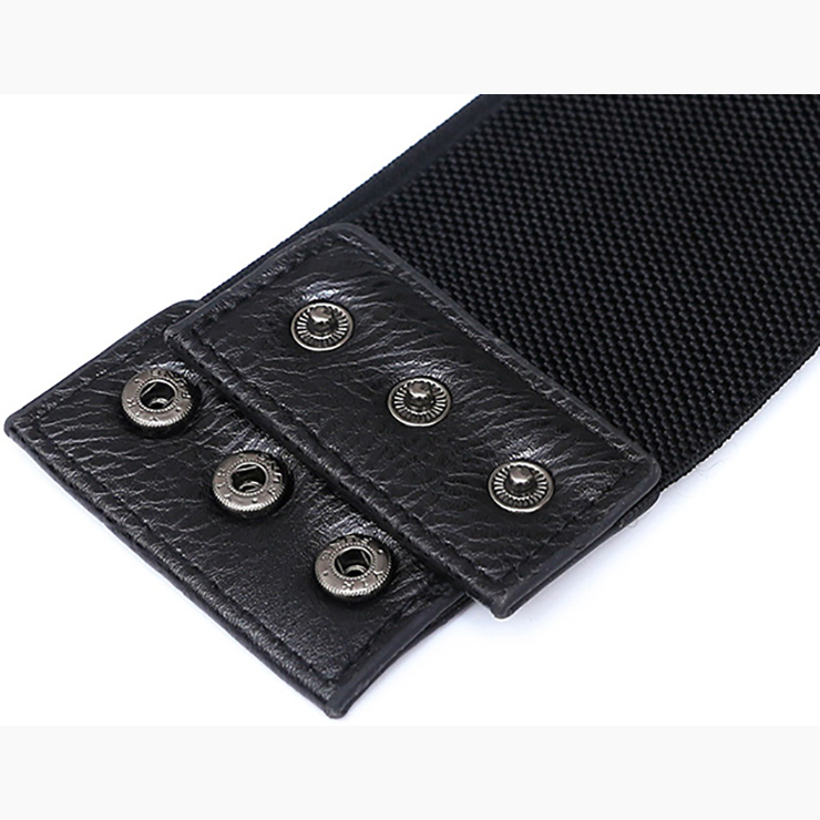 This fashion black waist belt featuring front with high quality faux leather fabric and lace-up closure, high quality elastic band patchwork, three snap buttons closure at back makes it easy and convenient to wear and take off, can be paired with blouses or dress. Suitable for daily casual, date, go out, party, office and more.
