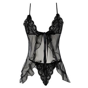This babydoll lingerie featuring spaghetti strap, low-cut, see-through and front open design, lace-up in front, made of comfortable, soft and breathable mesh fabric, make you look sexy and charming, matching T-back. Suitable for nightwear, at home, Valentine's Day, honeymoon, wedding night and more.