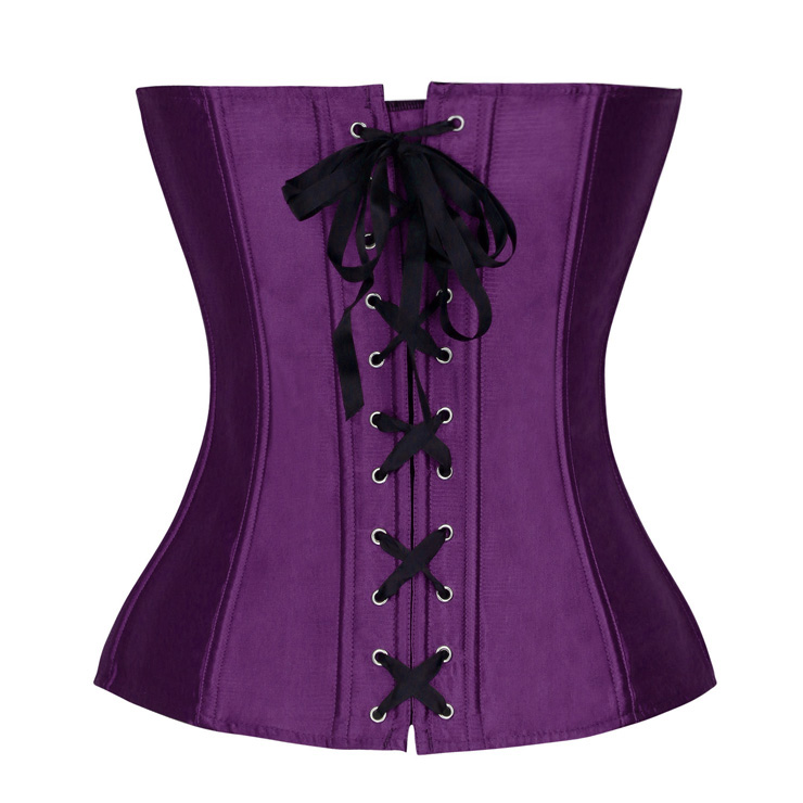 This Retro Purple Overbust Corset features: high quality satin corset with front busk closure, retro black lace cover the bust and waist, lace-up in back for cinching.