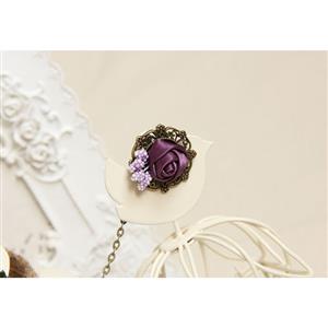 This Retro Bracelet features: high quality purple rose wristband with a delicate bronze metal embellished with purple rose and leaves, also decorate with a bronze metal garland charm and three pomegranate colored beads, bronze metal chain connecting a crafted bronze metal embellishment with a smaller purple rose, adjustable metal chain closure easy to wear.