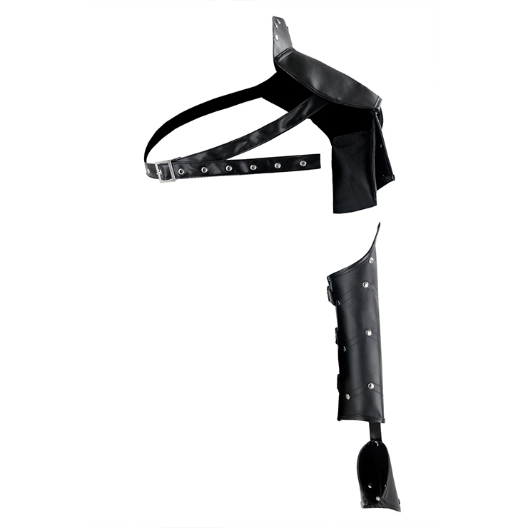 Steampunk black faux leather armlet features: made by high quality faux leather with rivets at surface, one-shoulder design, a strap with adjustable eyelet over the bust for cinching, three buckles fix in the medial arm (Only the Armlet).