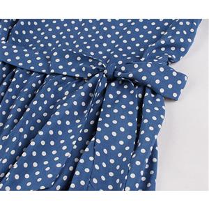 This Vintage Dress features: made of soft and comfortable fabric, royal blue dress with cute white polka dots, simple round neck and short sleeves design, high waist barrel form and midi length, concealed zipper closure on the back, matching belt. Perfect for Cocktail party, party, dating, daily casual and other occasions.