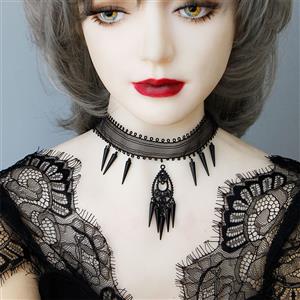 This Victorian Gothic Choker features: exquisite black sheer floral lace choker,black beads,pendant and small conical embellished,high quality adjustable alloy chain and buckle closure. (Only the choker)