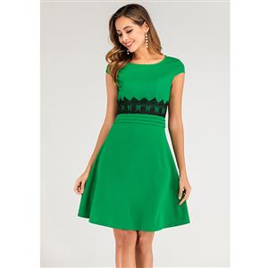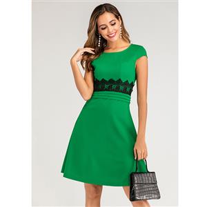 This Elegant Dress features: simple round neckline and cap sleeves, beautiful floral lace and folded trim at the waist make your tummy look flatter, back zipper closure, high waist and swing skirt make you look yet elegant and slim. Perfect for cocktail party, tea party, picnic, office, dating, daily casual and other occasions.