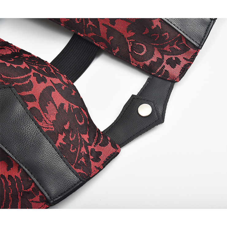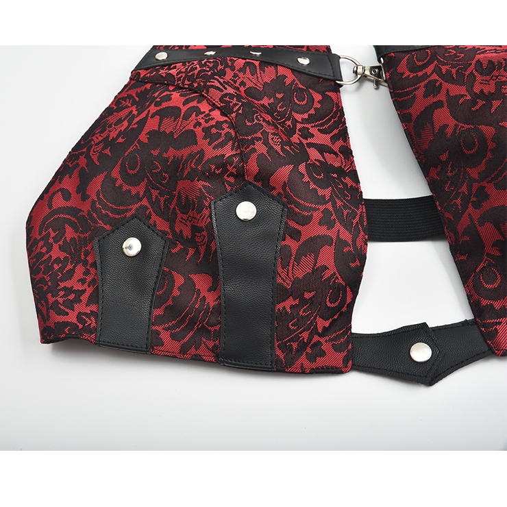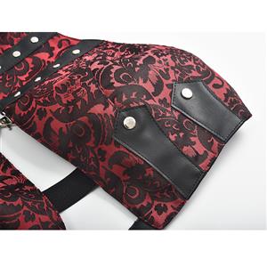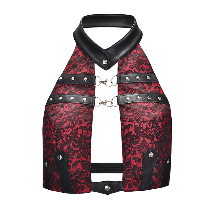 Made of high quality jacquard, this Steampunk Vest features PU leather halter neck, two PU straps with studs and buckles over the bust for tightening, backless with elastic band for fitting. Perfect accessory for Steampunk theme party, Halloween, Cosplay, drama and other occasions.