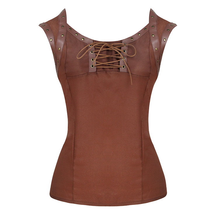 This Gothic Style Blouse features sexy square collar, PU leather trim and rivets embellished on the collar and cuffs, lace-up details on the bust, slim fitting waistline and crepe silk-like fabric make you look charming, zipper closure on the right side. A perfect match for gothic style skirt, steampunk corset, jeans and more.