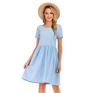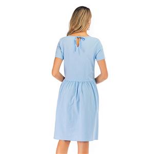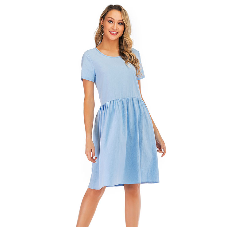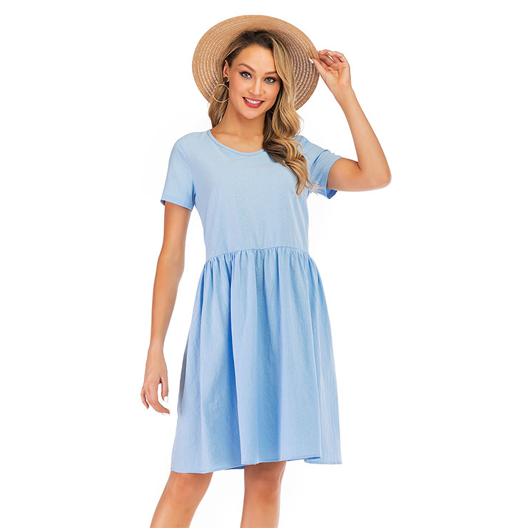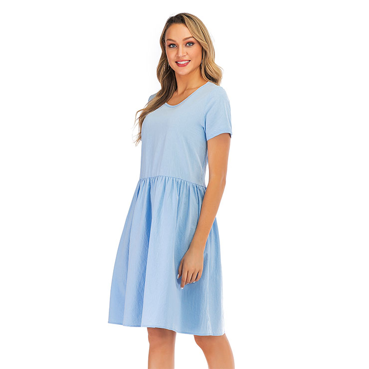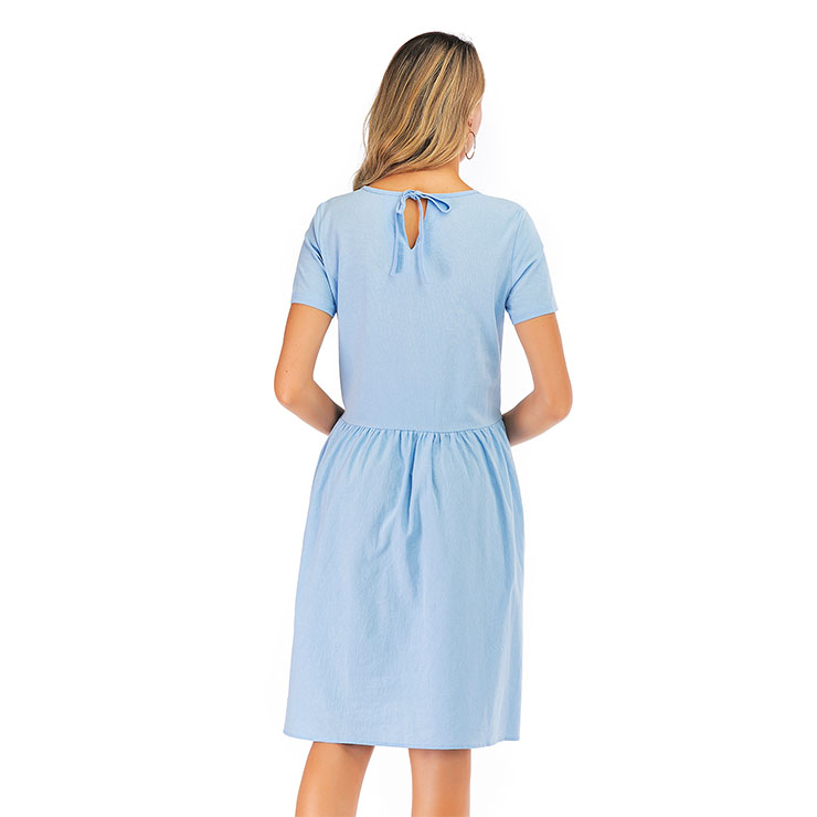 Made of high quality and comfortable cotton fabric, this simple dress features crew neck and short sleeve, loose waistline and knee-length, string fixed at the back. (Only the Dress)