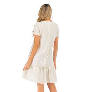 Made of high quality and comfortable cotton fabric, this casual dress features crew neck and short sleeves, unique design ruffle hemline, buttons stittched at the back, comfortable loose waistline and swing hemline make you look charming. (Only the Dress)