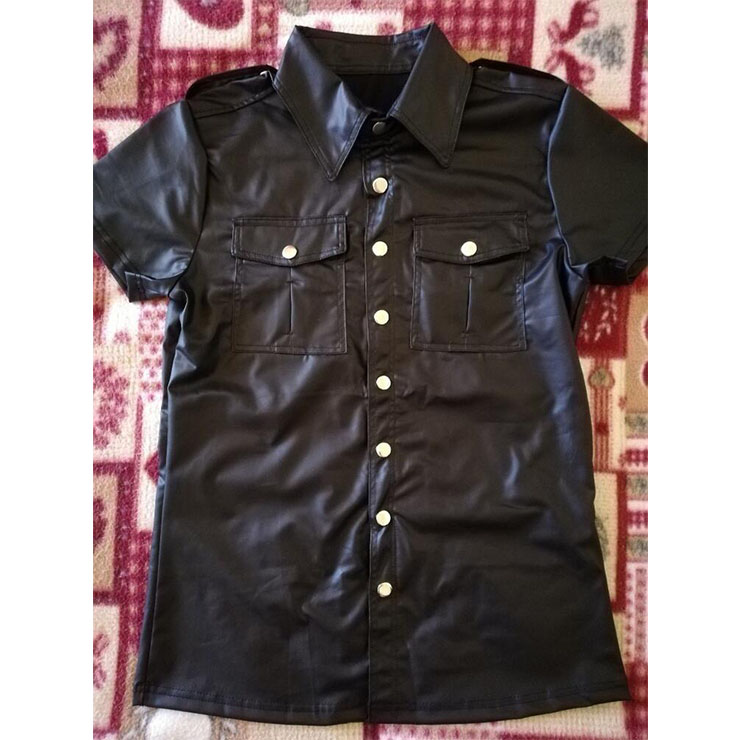 This men's sexy shirt made of high quality, soft and glossy PU, lapel and short sleeves, front pockets, stretchy Tight-fitting design shows off your body perfectly, buttons closure on the front. Perfect for daily casual, night club, personal party, bar and other occasions.