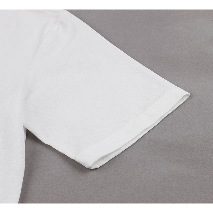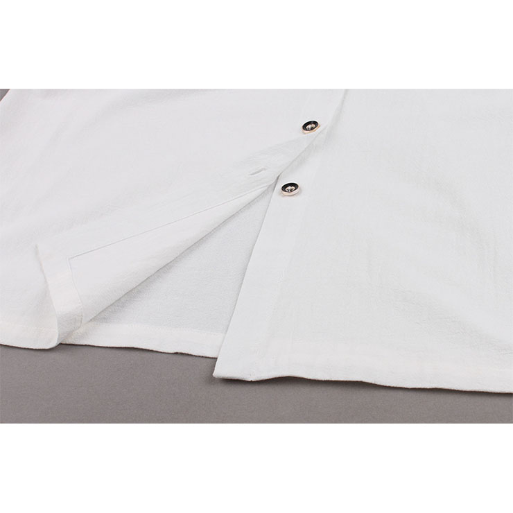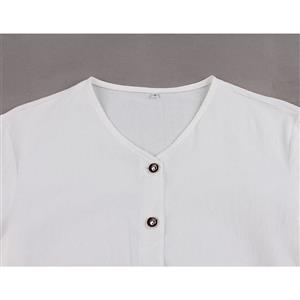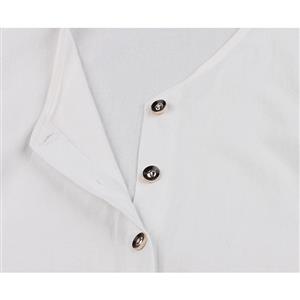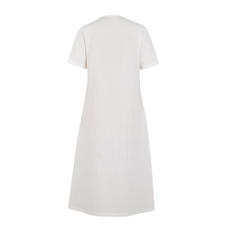 Made of high quality cotton fabric, this elegant dress features V neckline and short sleeve, cardigan design, fastened with black buttons at the front, loose waistline and maxi length, can be wear as a dress or cardigan coat.