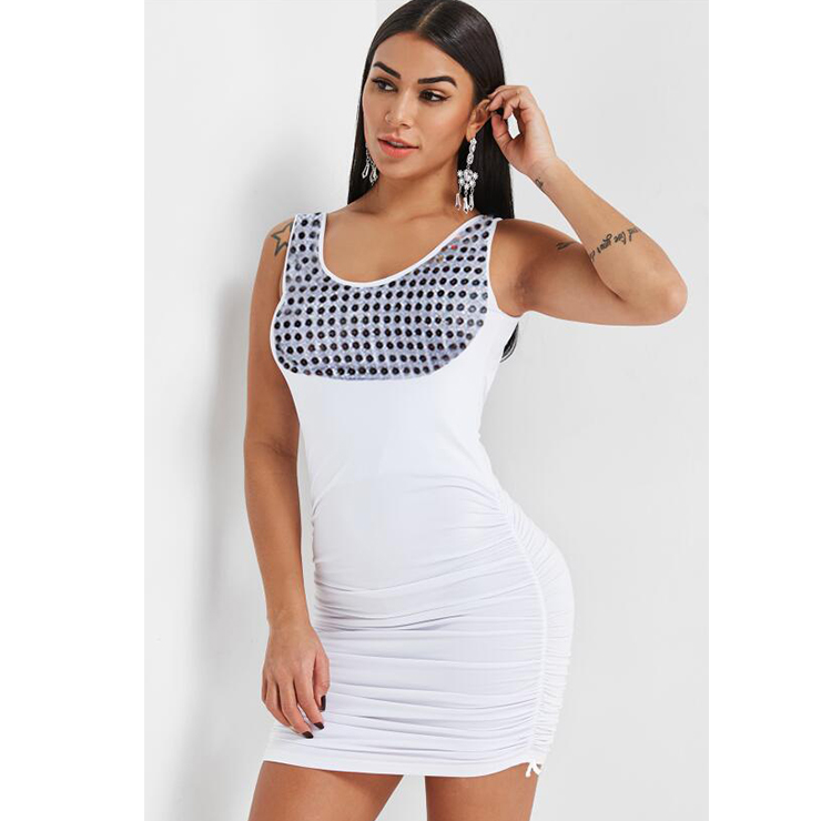 Women's sexy clubwear dress features: sleeveless tank mini dress, sequins embellished on the bust and back, sexy cut-out on the back, stretchy fabric and slim-fitting mini length show your body curve perfectly. Suitable for Bar, Nightclub, Party, Evening Gathering, daily casual and other occasions.