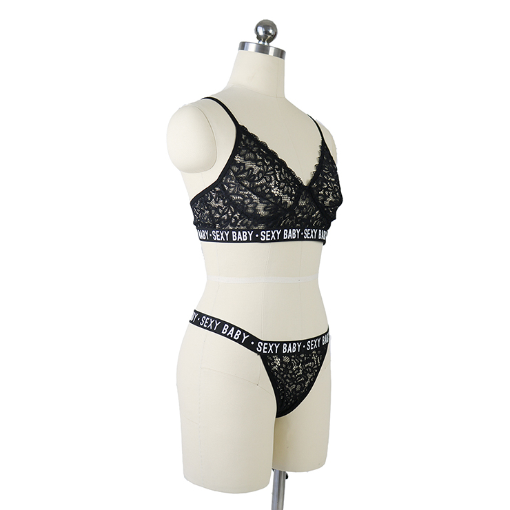 Made of high quality, soft andst sheer lace panty.Design: "SEXY BABY" Letter print to the edge.Lingerie set with adjustable straps and back button,matching flattering bottom,sexy and chic.