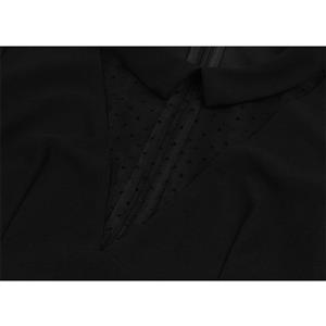 This sexy dress features unique sheer mesh spliced at the front revealing the bust, lapel and sexy low-cut, simple long sleeves, concealed zipper closure at the back, high waist and midi length make you look yet slim and elegant.