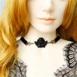 This gothic choker features: high quality black cloth belt with black evil little angel pendant embellished, adjustable chain and tiny hook at back for best-fit. Suitable for Halloween Party, daily casual, party, fashion show and more (Only the choker).