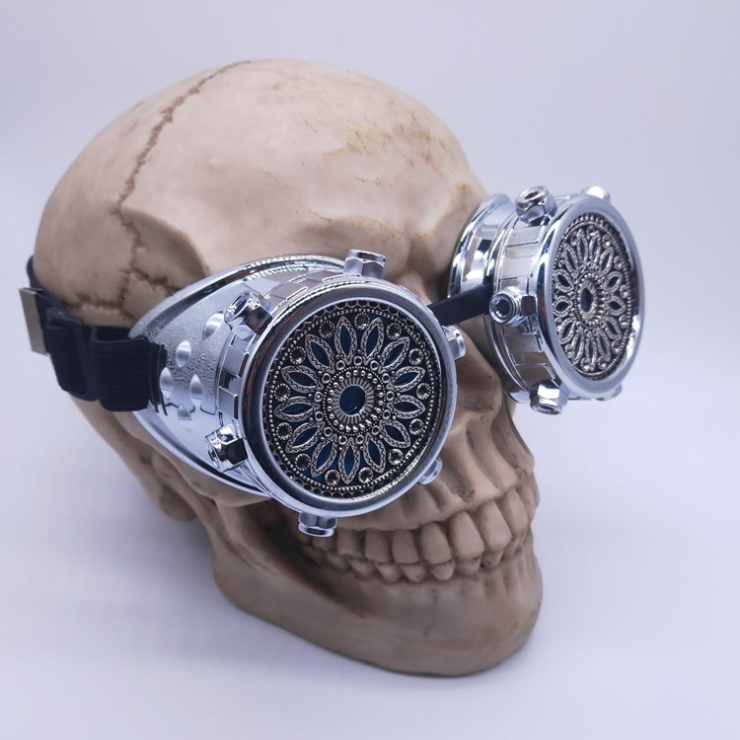 This Unisex Steampunk Goggles features Baroque floral lens and blue lens which could be replaced, super cool metallic color goggles, adjustable band well fixed on your head. Perfect accessory for steampunk theme party, cosplay, Halloween, ball, Masquerade and other occasions.
