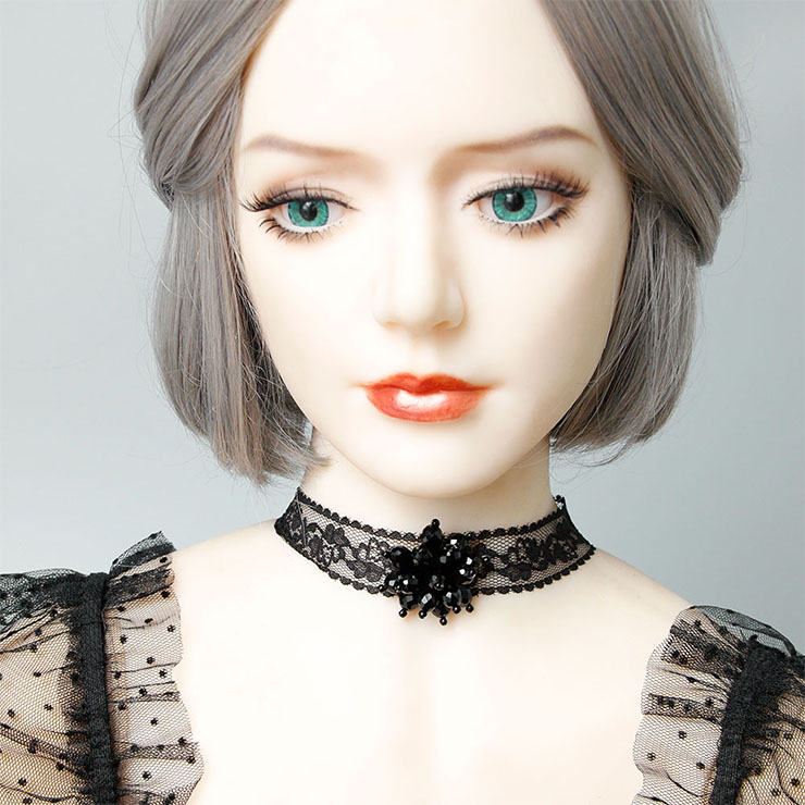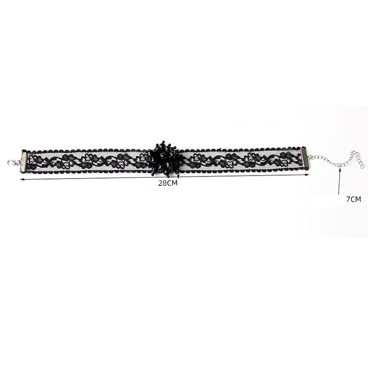This Victorian Gothic Choker features: exquisite black sheer floral lace choker, black beads embellished, high quality adjustable alloy chain and buckle closure. (Only the choker)