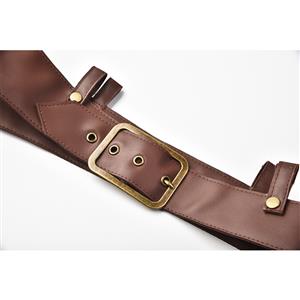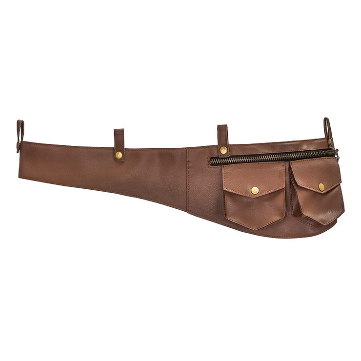 Steampunk Corset Belt featuring high quality PU leather material, side two small pockets with studs, zipper detail, alloy buckle fastener is convenient to wear. Perfect for Steampunk theme party, Halloween, Cosplay, Renaissance festival and more.