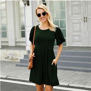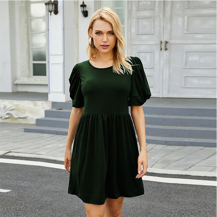 Made of high quality and comfortable fabric, this simple solid color dress features round neck and fold knot design puff sleeve, high waistline and mini length,show your figure perfectly. Perfect for daily casual, party, banquet, picnic, cocktail and other occasions.(Only the dress)