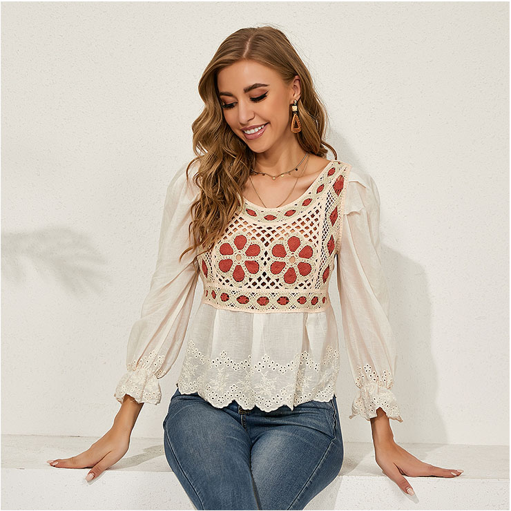 This shirt is made of comfortable and soft fabric,unique long lantern sleeves and square collar,flowers embroidery upper body,hollow out and ripple hem design.Perfect match with any shorts, jeans or skirt. Suitable for vacation, daily casual, go out, school, dating, office and other occasions.(Only the shirt)