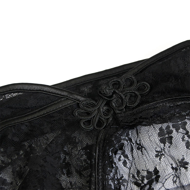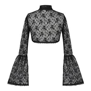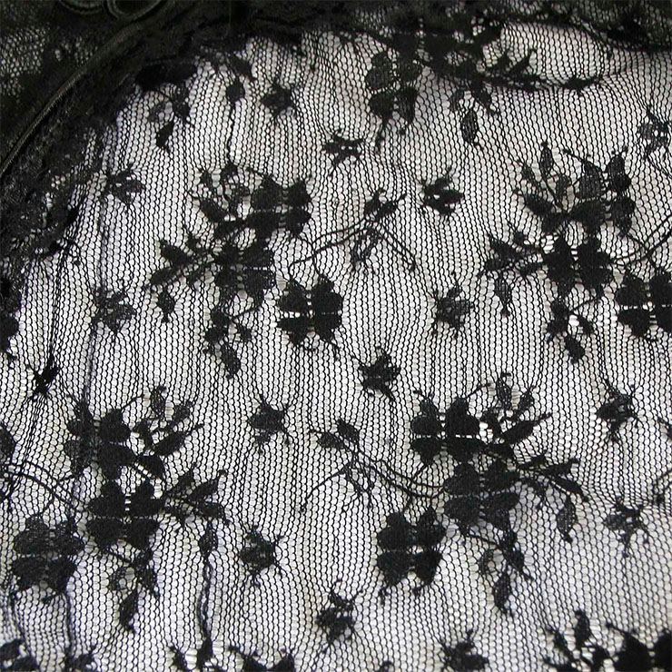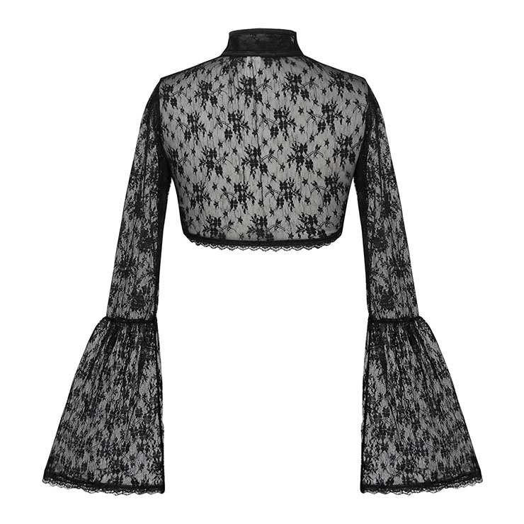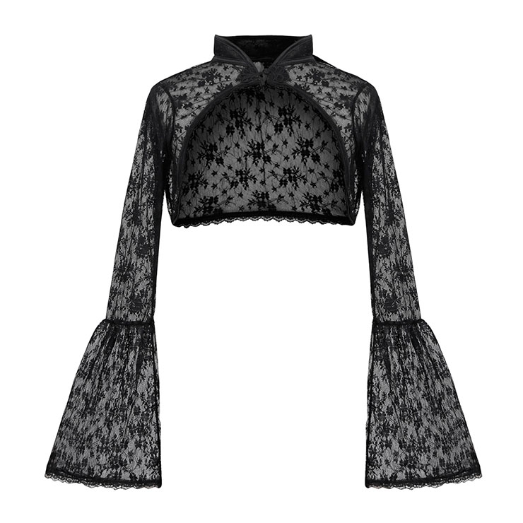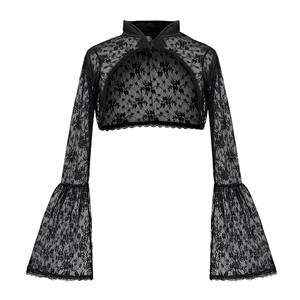 This Gothic Blouse is characterized by stand collar and cardigan buckle,flared sleeves and mid waist length design, made by high quality sheer lace.A wonderful addition for Medieval costume and Gothic style.