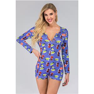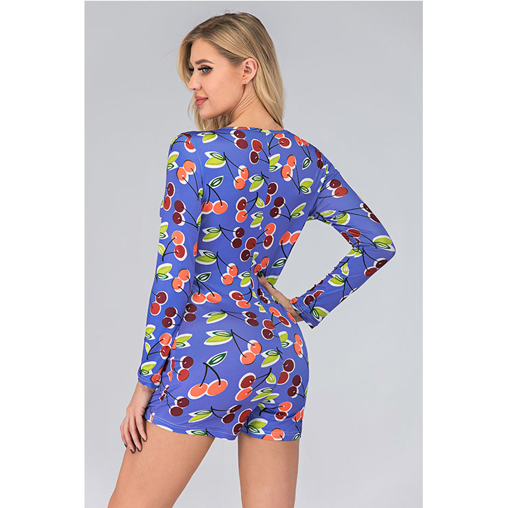 This One-piece Swimsuit is so fashion and sexy,split v neck design is the highlight, long sleeves and boxer shorts design,cherries pattern printed covering the jumpsuit.Suitable for swimming,beach vacation,outer activities and more.